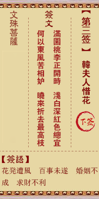 解曰:花発遭风 百事未遂 婚姻不成 求财不利